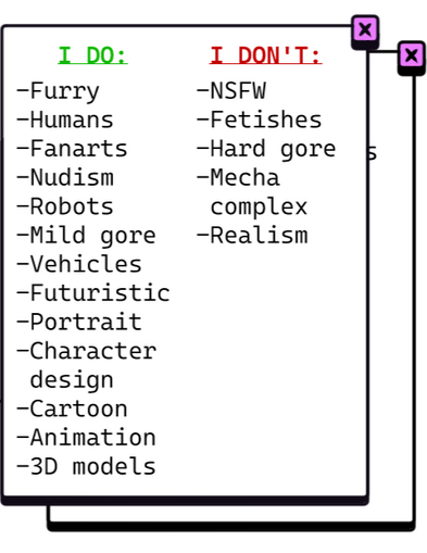 I will be in communication with you during the order process, so if you have any questions or changes to the drawing, let me know directly. During the sketch process, changes can be accepted in the drawing, however, later any changes you (you) wish to make in the drawing will be charged extra (If the error is mine, no extra charge will be made).Refunds are not accepted unless the error is mine in giving you a failed delivery.I have the right to reject your order if it becomes: NSFW, fetishes, Hard Gore, Mecha complex, Realism; or any other reason that leads me to reject your order.